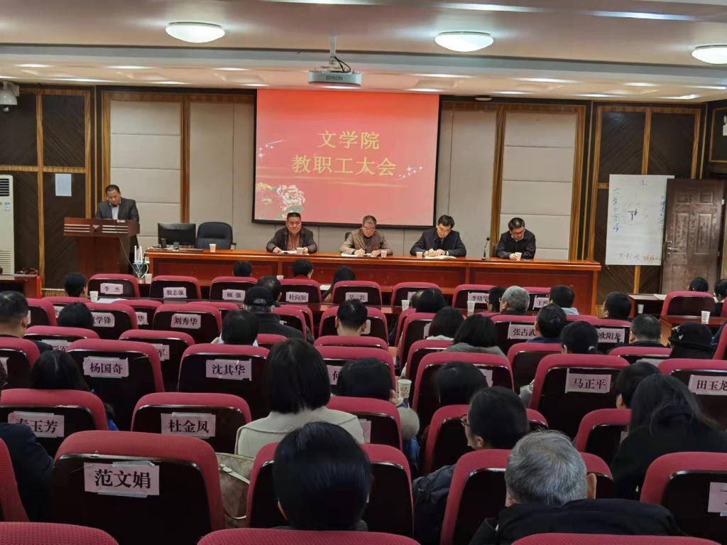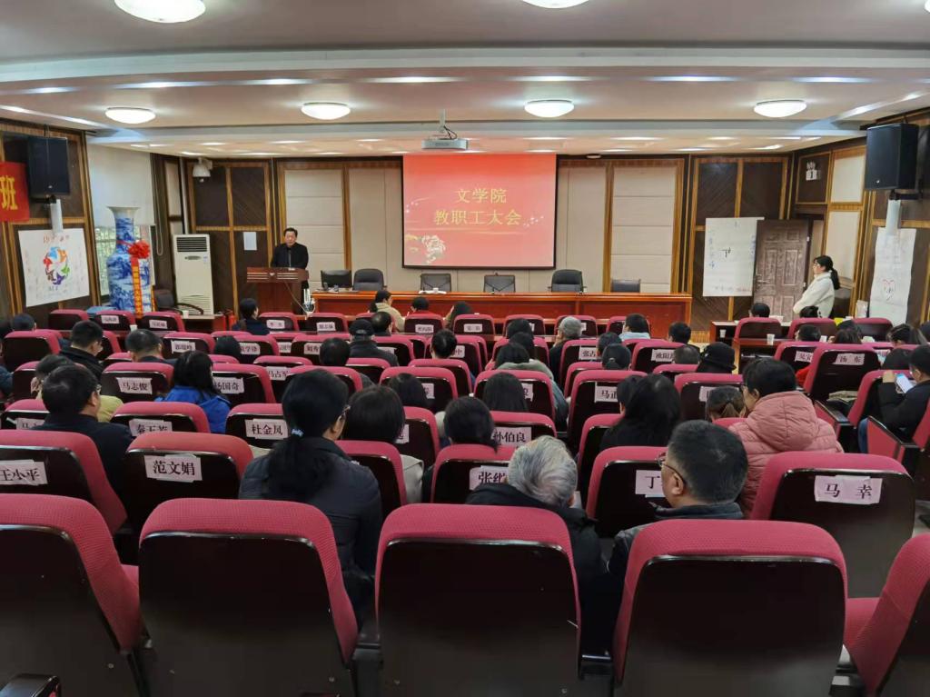 李伶俐宣讲了湖南省第十二次党代会和中央经济工作会议主要精神;宣读了文学院2022年工作要点,并就学院政治理论学习,国家一流学科专业建设,教育部教学优秀成果奖申报,党风廉政建设,师德师风建设,常态化防疫和安全稳定、意识形态和期末工作等作了进一步强调,要求全院教职工切实学懂弄通做实习近平新时代中国特色社会主义思想,忠诚捍卫“两个确立”,坚决做到“两个维护”。坚持“四有标准”,为党育人,为国育才,以教书育人、立德树人为己任,将价值塑造、能力培养、知识传授三位一体的教学理念贯穿于教育教学各个环节,不断提高育人本领和水平,以优异的成绩促进双一流建设,迎接党的二十大胜利召开。