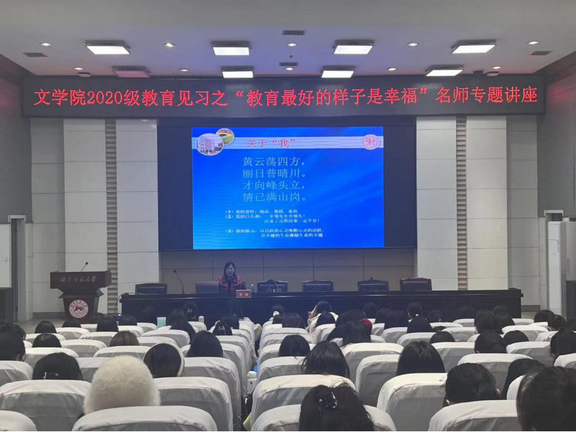 (通讯员 唐子涵 何美瑶)2月27日下午,文学院2020级汉语言文学(师范)专业在至善楼至善讲堂开展教育见习活动。此次活动由优秀校友黄丽主讲,中文系副主任刘光成担任主持人,2020级全体汉语言文学(师范)专业学生参加。