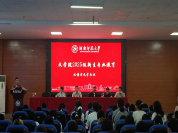 (通讯员 黄好逸 邵汝莹 上官思涵 崔铭桓 段江邻)9月15日下午,文学院在张公岭校区分别为汉语言文学专业、戏剧影视文学专业、汉语国际教育专业2025级新生举办了专业教育讲座。文学院教学副院长岳凯华、党委副书记刘宓蜜、汉语国际教育系主任陈晖、戏剧影视文学系主任胡海义、中文系副主任刘光成、工会主席廖述务、潇湘电影集团有限公司艺委会副主任杨蔚然以及各专业的授课老师、硕士生导师出席此次活动,2025级文学院辅导员周灿、唐清华及九位助理辅导员陪同参与,2025级全体新生参加。