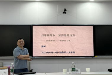 (通讯员 陈晰)2025年6月29日14时,中南大学人文学院教授、博士生导师易彬教授应邀为我院师生作了主题为“幻想底尽头 梦开始的地方”的读书会活动。湖南师范大学、中南大学、湖南大学、湖南第一师范学院、长沙理工大学等高校的诸位老师和博士参与对谈,此次活动吸引了众多校内外相关专业的学生前来聆听。