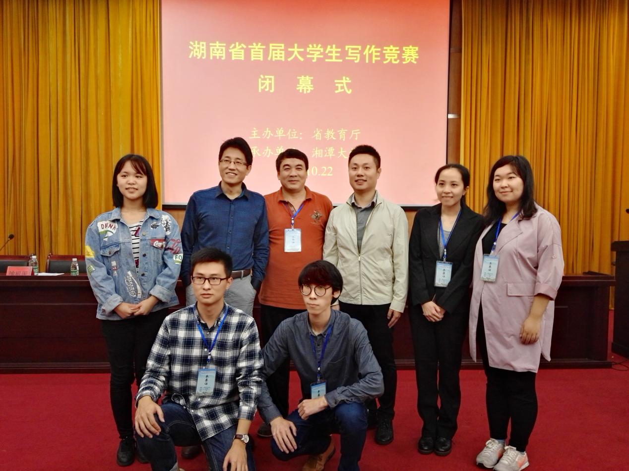 (供稿 教务办)10月20——22日,湖南省首届大学生写作竞赛决赛在湘潭大学举行,由我院选拨输送的五名学子代表学校出赛。我校学子表现优异,共获一等奖2项、二等奖1项、三等奖2项,团队综合实力在全省高校首屈一指,一等奖获奖数和获奖总数均居全省第一。