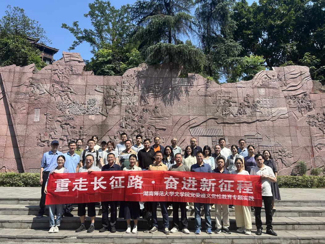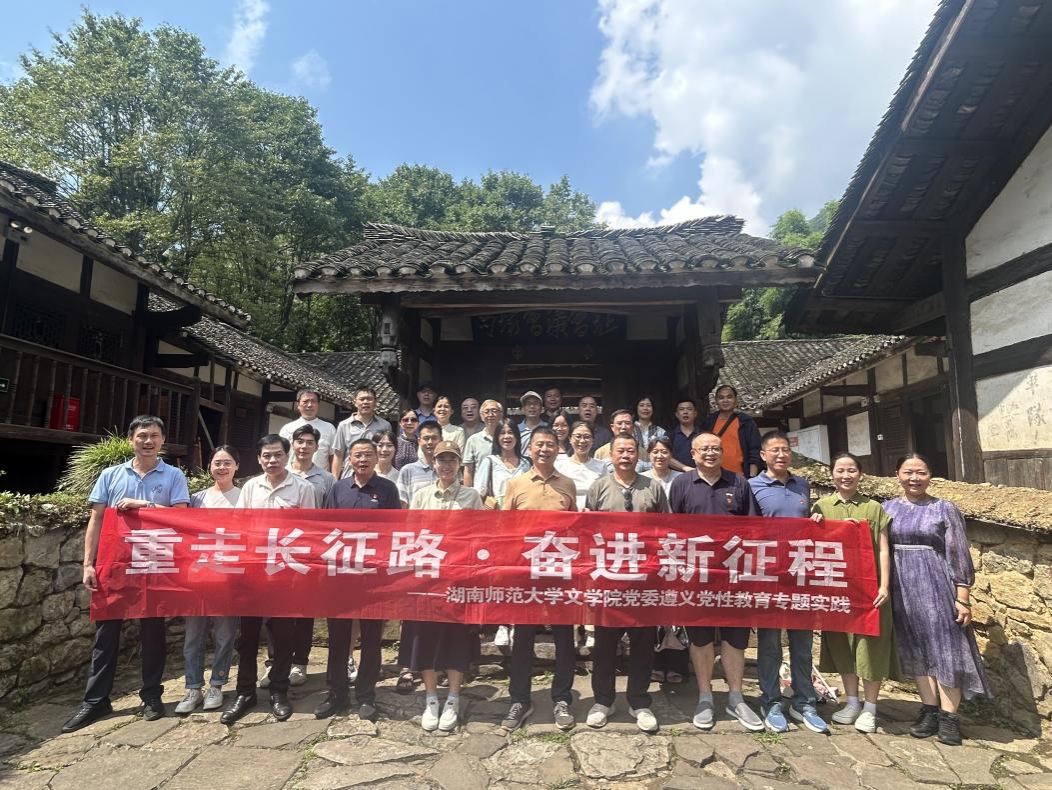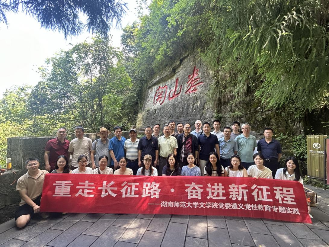 (通讯员 陈雅琪)为深入学习贯彻习近平新时代中国特色社会主义思想,弘扬伟大长征精神,凝聚奋进力量,助力新一轮学科建设和评估,2025年7月28日至31日,湖南师范大学文学院党委组织教师党员赴贵州遵义开展“重走长征路·奋进新征程”党性教育专题实践活动。通过沉浸式现场教学、情景体验与红色研学,30余名党员在革命圣地追寻红色足迹,淬炼党性修养,汲取前行力量。