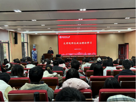 (通讯员谭舒云)12月4日下午,文学院在文渊楼216报告厅召开师生政治理论学习大会,院党委书记熊剑峰、校党委讲师团成员陈红桂作2025年度党的创新理论宣讲报告,全体教职工以及部分学生党员参会。会议由学院党委副书记刘宓蜜主持。